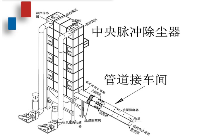 working principle:Pulse dust collector refers to the method of removing dust attached to the filter medium (bag or filter cartridge) by blowing compressed air; Depending on the size of the dust collector, there may be several sets of pulse valves controlled by a pulse controller or PLC. Each set of pulse valves is opened to remove dust from the bag or filter cartridge it controls, while the other bags or filter cartridges work normally. After a period of time, the next set of pulse valves is opened to clean the next part of the dust collector, which consists of ash hopper, upper box, middle box, lower box, etc. The upper, middle, and lower boxes are divided into compartments. During operation, dusty gas enters the ash hopper through the air inlet duct. Coarse dust particles directly fall into the bottom of the ash hopper, while fine dust particles enter the middle and lower boxes upwards with the turning of the airflow. Dust accumulates on the outer surface of the filter bag, and the filtered gas enters the upper box to the clean gas collection pipe exhaust duct, and is discharged to the atmosphere through the exhaust fan. The dust cleaning process involves first cutting off the clean air outlet duct of the room, so that the bag in the room is in a state of no airflow passing through (stopping the air and cleaning the dust in each room). Then, the pulse valve is opened and compressed air is used for pulse blowing to clean the dust. The shut-off valve is closed for a sufficient time to ensure that the dust peeled off from the filter bag settles in the ash hopper after spraying, avoiding the phenomenon of dust adhering to the adjacent filter bag surface with the airflow after leaving the filter bag surface. The filter bag is thoroughly cleaned, and the exhaust valve, pulse valve, and ash discharge valve are fully automatically controlled by a programmable controller. The dusty gas enters through the air inlet, and when passing through the ash hopper, some large particles of dust in the gas are separated by inertia and gravity, and directly fall into the bottom of the ash hopper. The dusty gas enters the filter bag filtration area of the middle box after passing through the ash hopper. The gas passes through the filter bag, and the dust is trapped on the outer surface of the filter bag. The purified gas enters the upper box through the filter bag opening and is then discharged through the air outlet